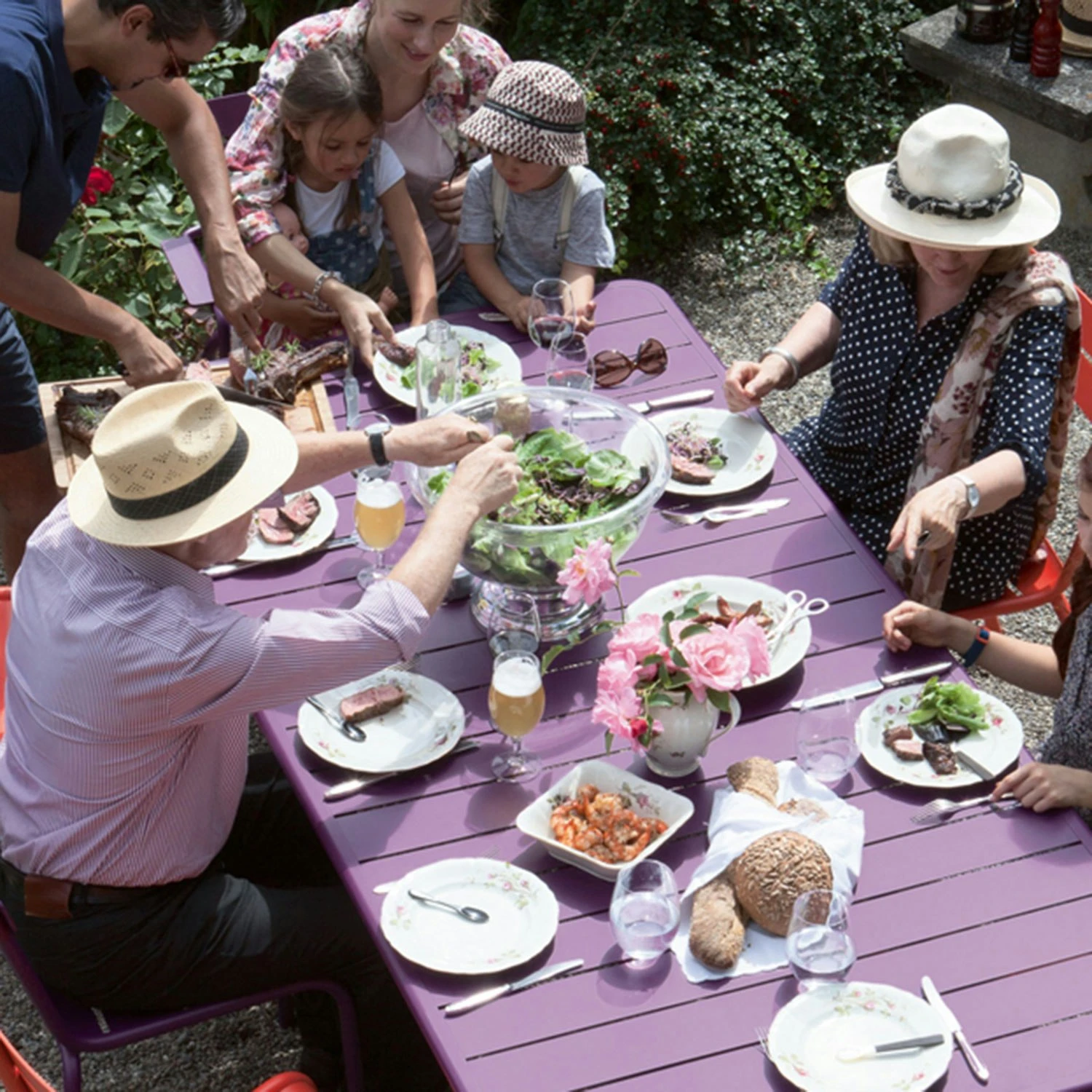 Luxembourg Tisch von Fermob. Ein großzügiger und moderner Tisch für mehrere Personen. Der Tisch besteht aus Aluminium, was ihn überraschend leicht macht. Dies macht es auch besonders einfach, den Tisch dort in den Garten zu bringen wohin man ihn braucht, wenn es Zeit für die Sommerparty, Studenten- oder Geburtstagsfeier ist.